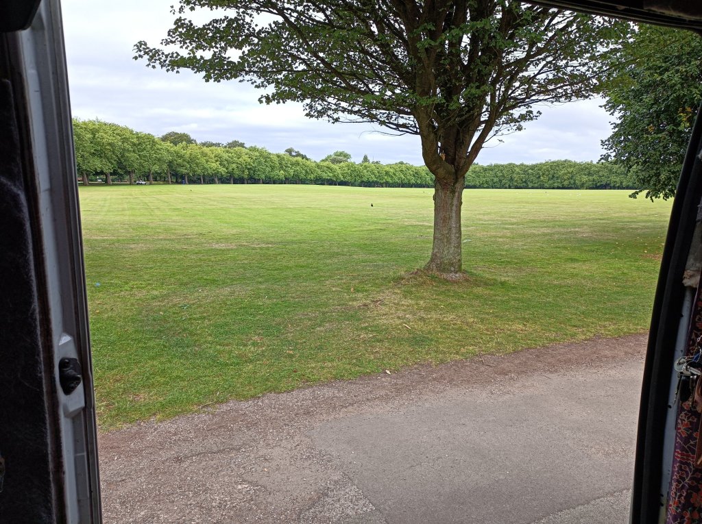 I moved in a day early because its a BHW and i got excited. So i have spent the fist night here and slept well. Got up at 7:30 and had a stretch in a field. This is the view of my front garden this morning.