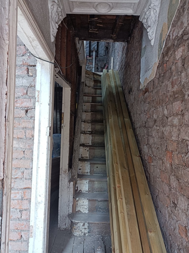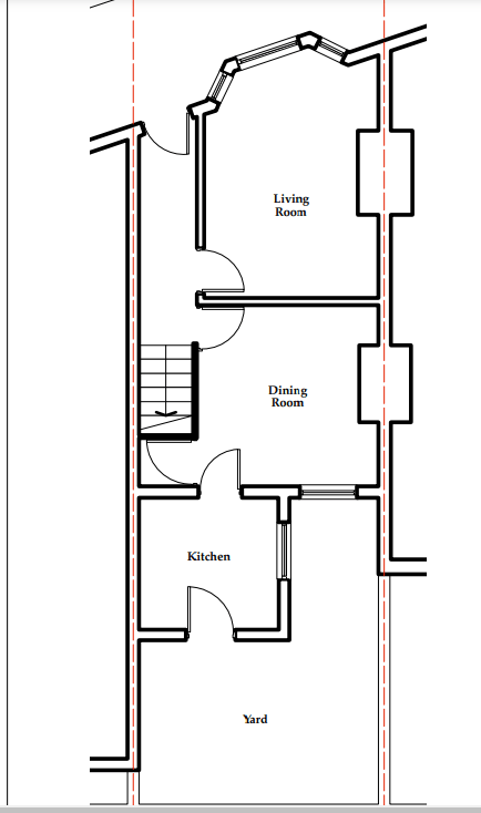In the UK we call my style of house a 3 up 3 down, meaning that the floor plan down stairs is identical to the upstairs, 3 rooms upstairs and 3 rooms downstairs. The Victorians built the main house and then an outrigger to the back of the property and most had the toilet out in the back yard! My outrigger on the ground floor was now going to house my staircase in one half and a bathroom in the other.
