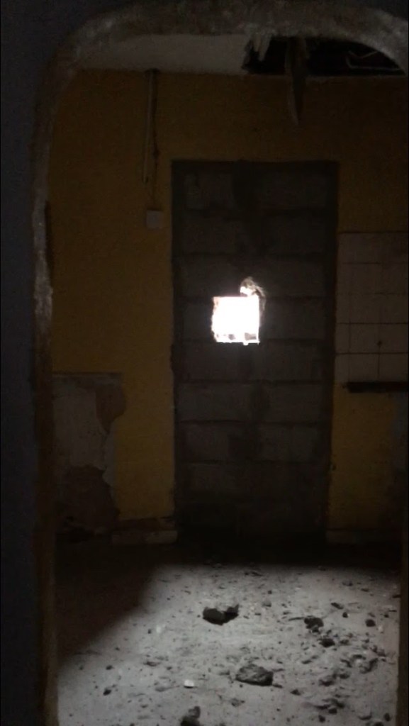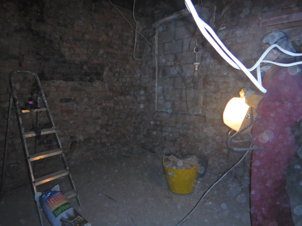 This shot below was in the once dining room with borrowed electricity from the neighbour and dust for days.