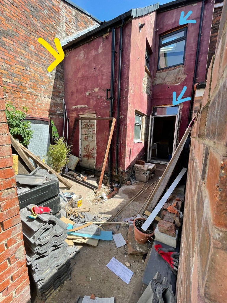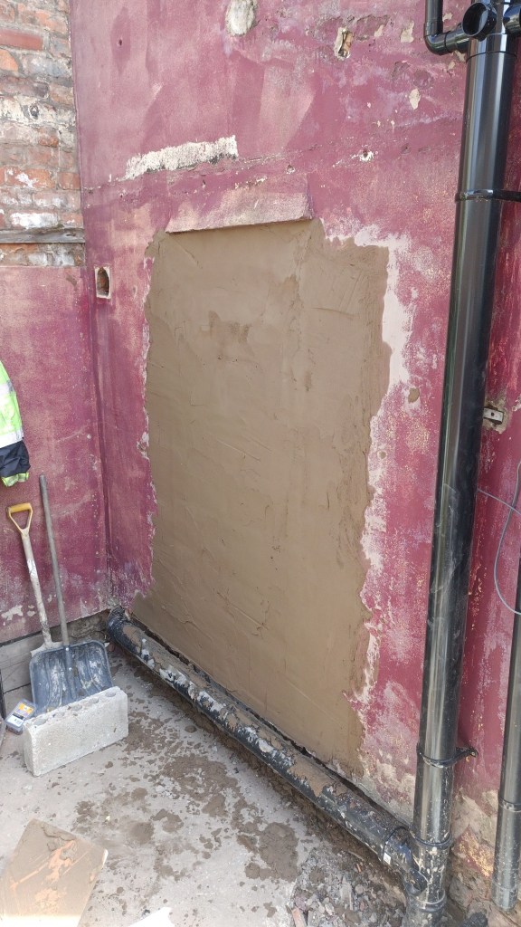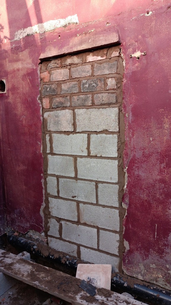 Next I needed to brick up the old back door and turn the kitchen into a bathroom.
