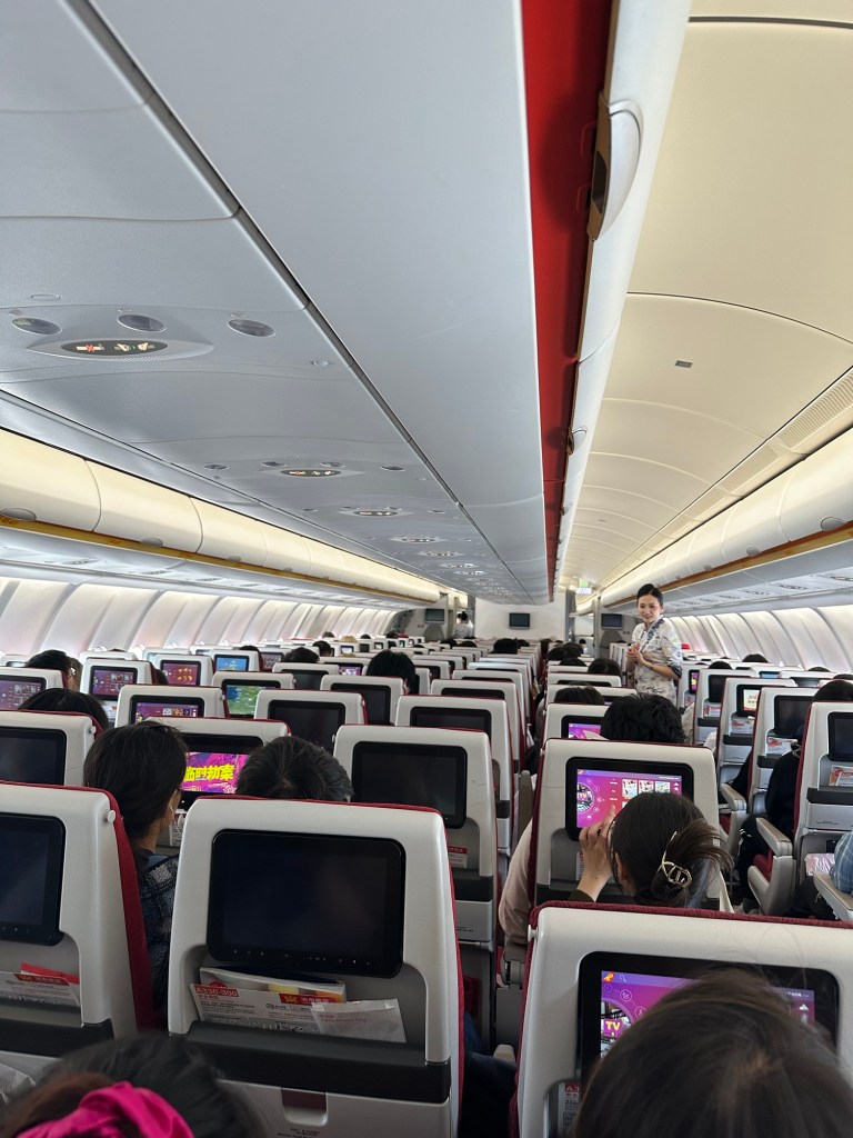 Her complete uniform was far more interesting than her male attendees’ beige waistcoat atop of a white shirt. I wondered as she poured my red tea into a paper cup, if she would be forbidden from wearing trousers. Perhaps Hainan Airlines enforces perceived gender roles because there are no overly camp crew either. Are there no gays allowed in my vaChina?